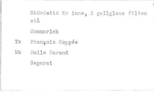 //// Skördetid är inne, stå //// Sommarlek Tx Fran$ois Coppée Mk Emile Durand Separat //// i gullglans fälten