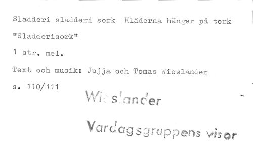 //// Sladderi sladderi sork Kläderna hänger på tork "Sladderisork" //// 1 str. mel. //// Text och musik: Jujja och Tomas Wieslander s. 110/111