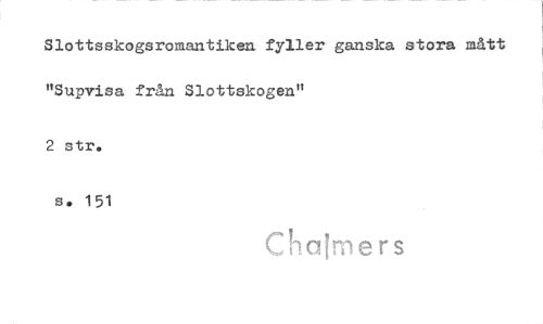 //// Slottsskogsromantiken fyller ganska stora mått "Supvisa från Slottskogen" //// 2 str. //// s. 151 //// Ciia[mers