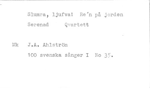 //// Slumra, ljufva! Re'n på jorden //// Serenad Qvartett //// J.A. Ahlström //// 100 svenska sånger I No 35*