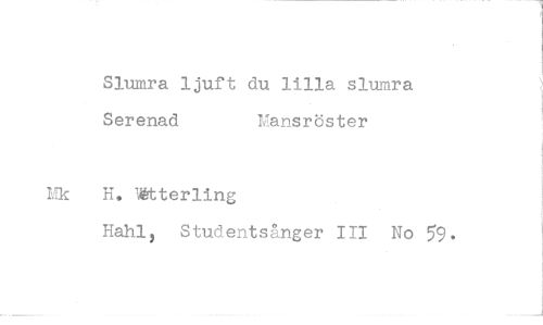 //// Slumra ljuft du lilla slumra //// Serenad Mansröster //// H. -#tterling //// Hahl, Studentsånger 111 No