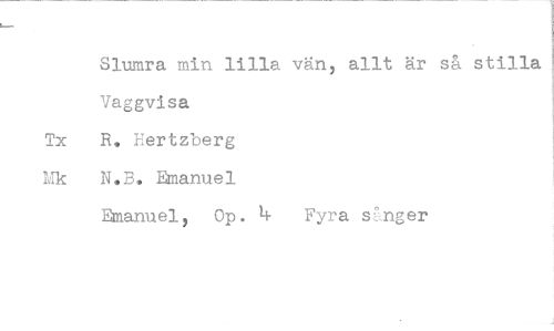 //// Slumra min lilla vän, allt är så stilla //// Vaggvisa //// R. Hertzberg //// N.B. Emanuel //// Emanuel, Op. 4 Fyra sånger