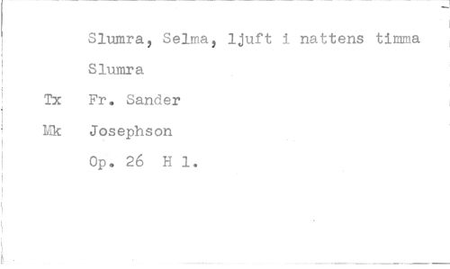 //// Slumra, Selma, Slumra Tx Fr. Sander Mk Josephson //// Op. 26 H 1. //// ljuft i nattens timma