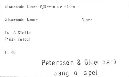 //// Slumrande toner fjärran ur tiden //// Slumrande toner //// Tx A Slotte Finsk melodi //// s. 48 //// 3str //// Petersson & Qtoer rtark oang o s pe)