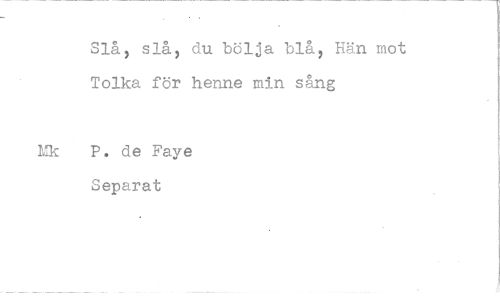//// Slå, slå, du bölja blå, Hän mot Tolka för henne min sång //// Hk P. de Faye Separat