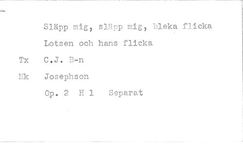 //// Släpp mig; släpp mig, bleka flicka Lotsen och hans flicka C.J. B-n Josephson //// Op. 2 H 1 Separat