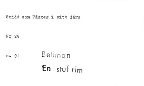 //// Smidd som Fången: i sitt jäm //// Nr 29 //// s* 91 //// men //// tEn stuf rim