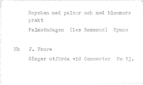 //// Smycken med palemr och med blommors prakt //// Palmsöndagen (Les Rameaux) Hymne J. Faure //// Sånger utförda vid Concerter No 13*