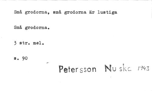 //// Små grodorna, små grodorna är lustiga Små grodorna. //// 3 str. mel. s. 90 //// Petersson Nu ske