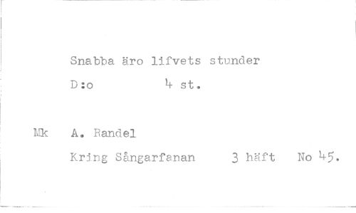 //// Snabba äro lifvets stunder D:o 4st. //// Mk A. Randel //// Kring Sångarfanan 3 häft