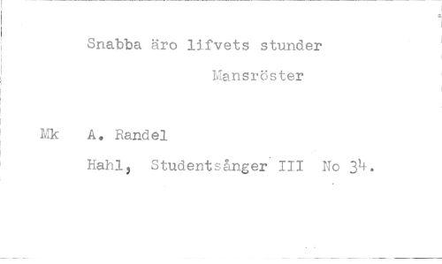 //// Snabba äro lifvets stunder Mansröster //// Mk A. Randel //// Hahl, Studentsånger 111 No 3^.