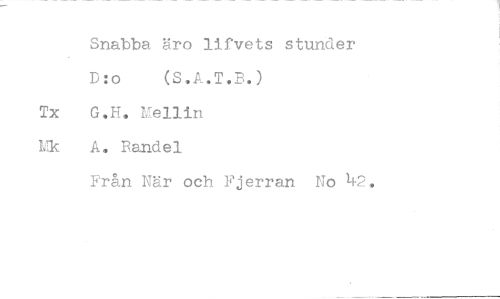 //// Snabba äro lifvets stunder //// D:o (S.A.T.B.) //// G.H. Mellin //// A. Randel //// Från När och Fjerran No 42.