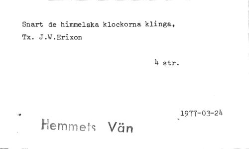 //// Snart de himmelska klockorna klinga, Tx. J.W.Erixon //// It str. //// 1977-03-24 //// Hemmeis Vän