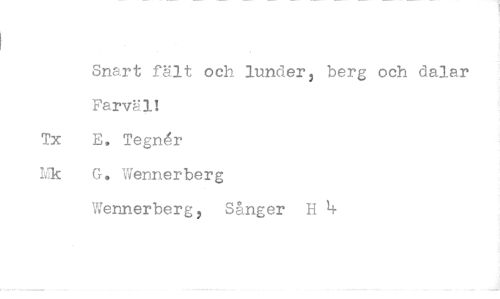 //// Snart fält och lunder, berg och dalar Farväl! //// E, Tegnér G. Wennerberg Wennerberg, Sånger H 4