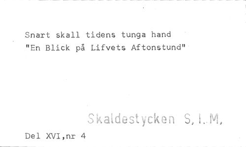 //// Snart skall tidens tunga hand "En Blick på Lifvets Aftonstund"