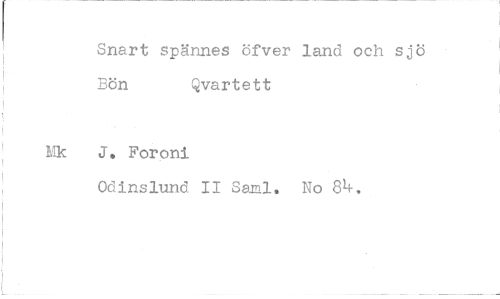 //// Snart spännes öfver land och sj Bön Qvartett //// J. Foroni //// Odinslund II Sami. No 84.