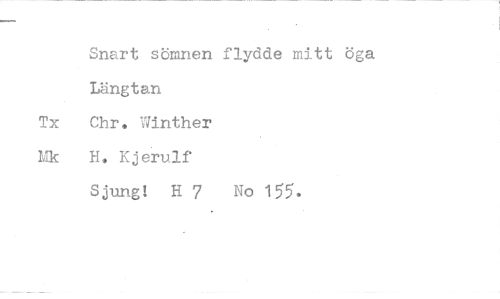 //// Snart sömnen flydde mitt öga Längtan Tx Chr. Winther Mk H, Kjerulf //// Sjung! H 7 No 155.