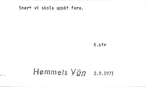 //// Snart vi skola uppåt fara. //// 6.str //// 2.9.1971