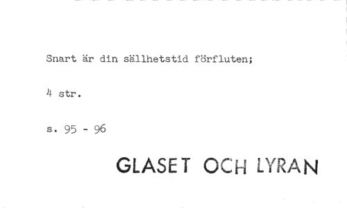 //// Snart är din sällhetstid förfluten; //// 4 str. s. 95 -96 //// GLASET OCH LYRAN