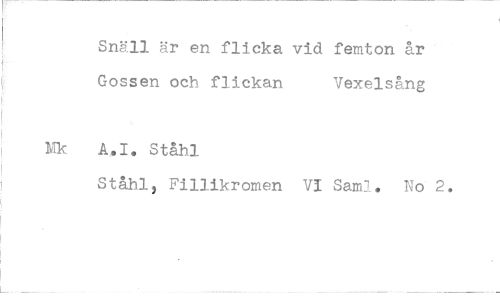 //// Snäll är en flicka vid femton år Gossen och flickan Vexelsång //// A.I. Ståhl //// Ståhl, Fillikromen VI Sami. No 2.