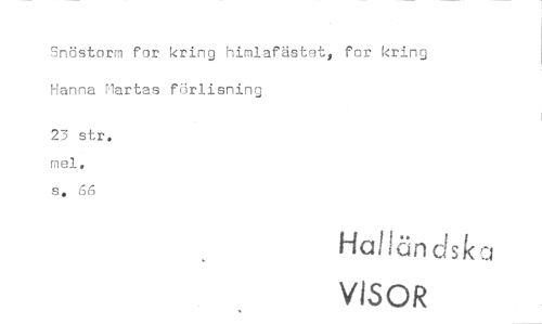 //// Snöstorm for kring himlafästet, for kring Hanna Nartas förlisning //// 23 str. mel. s. 66 //// HaHänds //// ViSOR