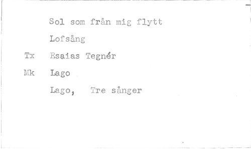 //// Sol som från mig flytt Lofsång Tx Esaias Tegnér Mk Lago //// Lago, Tre sånger