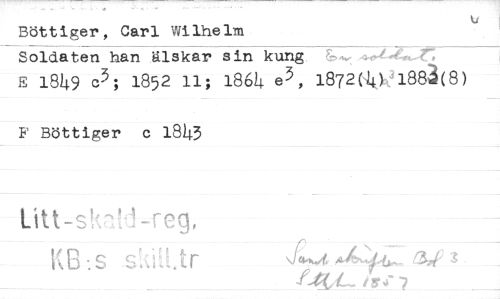 //// Böttiger, Carl Wilhelm //// Soldaten han älskar sin kung " 7" //// E 18^9 c3; 1852 ii; 1864 e3, 1872(4^188^(8) //// B' Böttiger c 1810 //// KB.s s.ja.tr