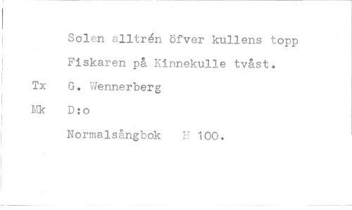 //// Solen alltrén öfver kullens topp Fiskaren på Kinnekulle tvåst. //// Tx G, Wennerberg Mk D:o //// Normalsångbok H 100.
