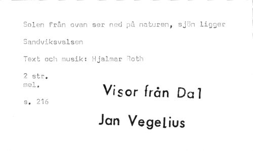 //// Snlen från o'van ser ned på naturen, sjun Ligger Sandviksvalsen //// Text och musik: Hjalmar loth //// 2 str. //// Visor från Dal //// s. 216 //// Jan Vegetius