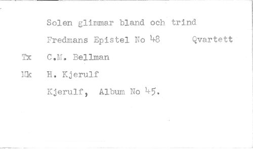 //// Solen glimmar bland och trind Fredmans Epistel No 48 Qvartett //// C.M. Bellman //// H. Kjerulf //// Kjerulf, Album No 45.