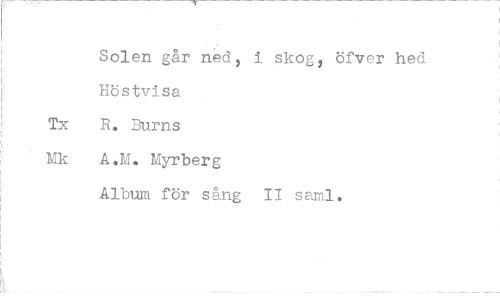 //// Solen går ned, Höstvisa R. Bums A.M. Myrberg Album för sång //// i skog, öfver hed //// II saml,