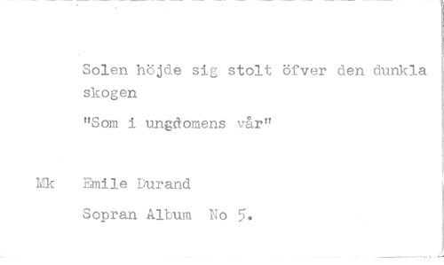 //// Solen höjde sig stolt öfver den dunkla skogen //// "Som i ungdomens vår" //// Emile Durand Sopran Album No 5*