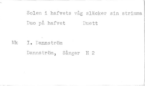 //// Solen i hafvets våg släcker sin strimma Duo på hafvet Duett //// I. Dannström Dannström, Sånger H 2