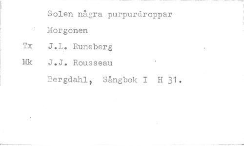 //// Solen några purpurdroppar Morgonen Tx J.L. Runeberg Mk J.J, Rousseau //// Bergdahl, Sångbok I H 3*!.