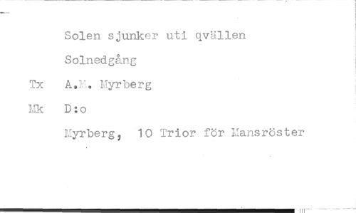 //// Solen sjunker uti qvällen //// Solnedgång //// A,?*. Myrberg //// D:o //// Myrberg, 10 Trior för Mansröster
