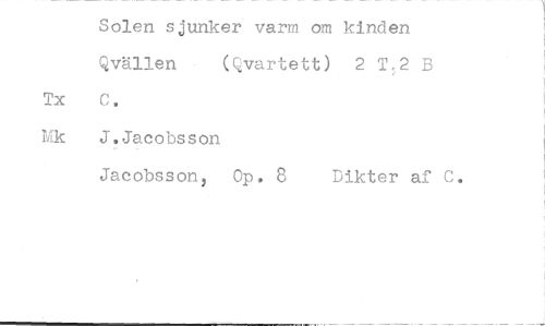 //// Solen sjunker varm om kinden Qvällen (Qvartett) 2 T.2 B Tx C. //// Mk J,Jacobsson //// Jacobsson, Op, 8 Dikter af C.