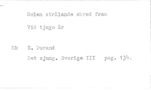 //// Solen strålande skred fram Vid tjugo år //// E, Durand //// Det sjung. Sverige 111 pag.
