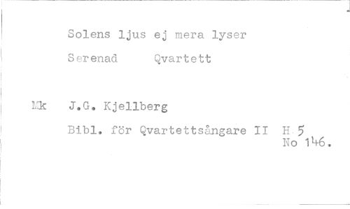 //// Solens ljus ej mera lyser //// Serenad Qvartett //// J.G. Kjellberg //// Bibi. för Qvartettsångare II