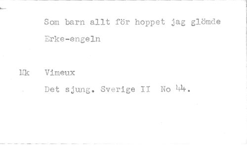 //// Som barn allt för hoppet jag glömde Brke-engeln //// Vimeux //// Det sjung. Sverige II No 44.