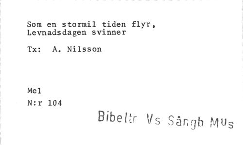 //// Som en stormil tiden flyr, Levnadsdagen svinner //// Tx: A. Nilsson //// Mel //// N:r 104