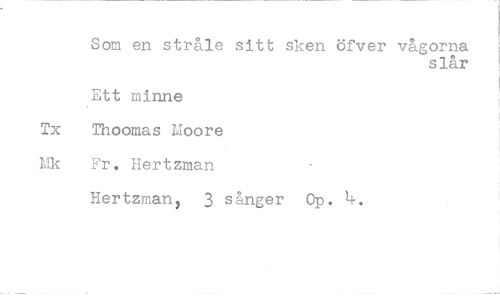 //// Som en stråle sitt sken öfver vågorna //// slår //// Ett minne Tx Thoomas Moore Mk Fr. Hertzman //// Hertzman, 3 sånger Op. 4.