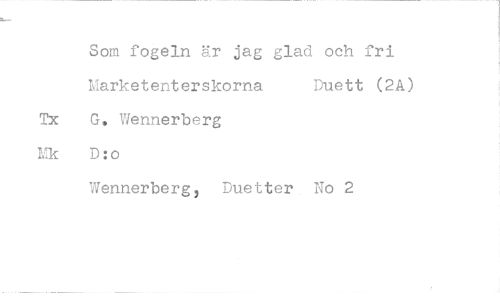 //// Som fogeln är jag glad och fri Marketenterskorna Duett (2A) Tx G. V/ennerberg D:o //// Wennerberg, Duetter No 2
