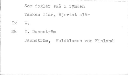 //// Som foglar små i rymden Tanken ilar, Hjertat slår W. //// I, Dannström //// Dannström, Waldblunen von Finland