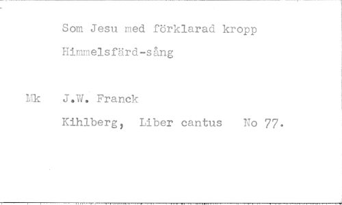//// Som Jesu med förklarad kropp Himmelsfärd-sång //// J.Ttf. Franck //// Kihlberg, Liber cantus No