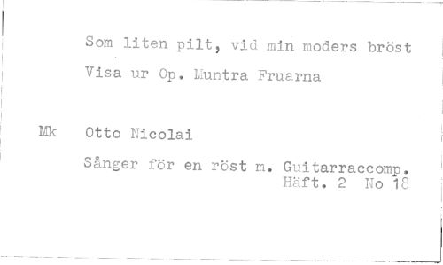 //// Som liten pilt, vid min moders bröst //// Visa ur Op. Muntra Fruarna //// Otto Nicolai //// Sånger för en röst m. Guitarraccomp. //// Häft. 2 No 18
