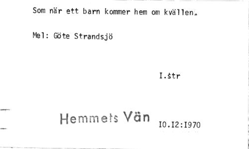 //// Som när ett barn kommer hem om kvällen^ Mel: Göte Strandsjö //// I.itr //// HemmeH Van