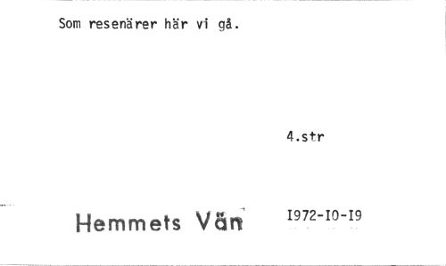 //// Som resenärer här vi gå. //// Hemmets V8n //// 4.str //// 1972-10-19