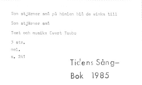 //// Som stjärnor små på himlen blå de vinka till //// Som stjärnor små //// Text och musik: Evert Taube //// 3 str. mel, s. 241 //// licens Sång- //// Bok 1985