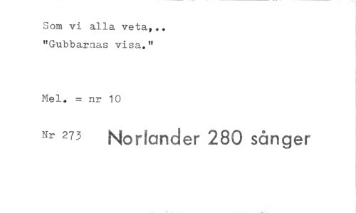 //// Som vi alla veta,.. "Gubbarnas visa." //// Mel. = nr 10 //// Nr 273 Nortander 280 sånger
