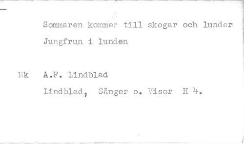 //// Sommaren kommer till skogar och lunder Jungfrun i lunden //// A.F, Lindblad //// Lindblad, Sånger o. Visor H 4.